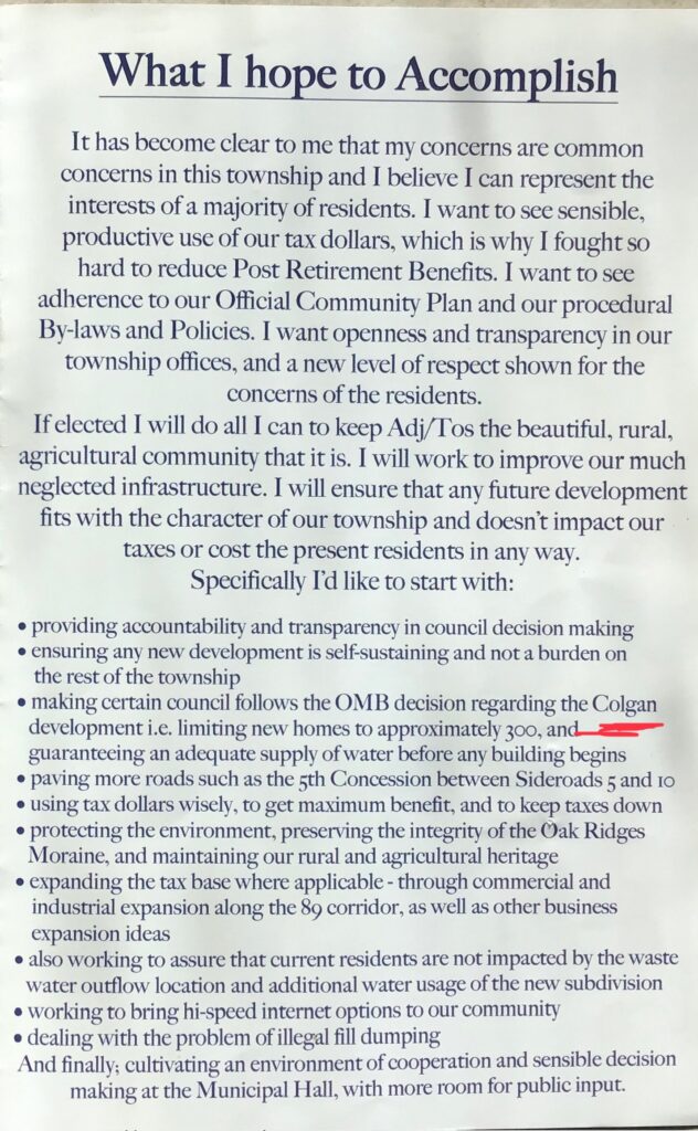 For years the previous deputy mayor Bob Meadows and I have been accused of providing misinformation to the residents of Adjala-Tosorontio. I have based my concerns as per the below supporting documentations: