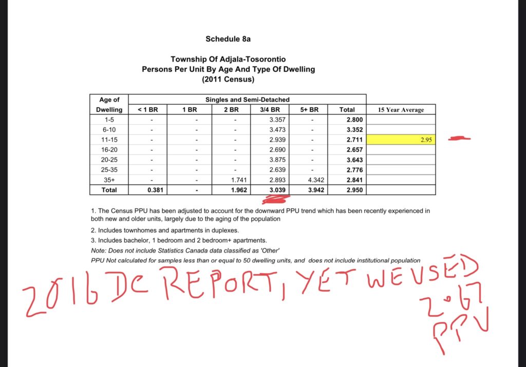 Bob Meadows and myself have raised concerns numerous times with the 2.67 persons per unit number that was used for calculations of the water and wastewater in colgan and also for Everett. All along both Bob Meadows and I were told by staff that 2.67 is the right number and we were told by council that we were providing misinformation. Below is the person per unit count as per the watson report in 2016. It shows the average number of persons per unit at 2.95 and for a 3-4 bedroom home the count was 3.039 persons per unit. This shows who was providing “Lies and misinformation “. Could the four past councillors Annette Bays, Scott Anderson, Deborah Hall Chancey aka Deborah Hall and Jonathan Pita let the residents know why they approved the development with 2.67 persons per unit.