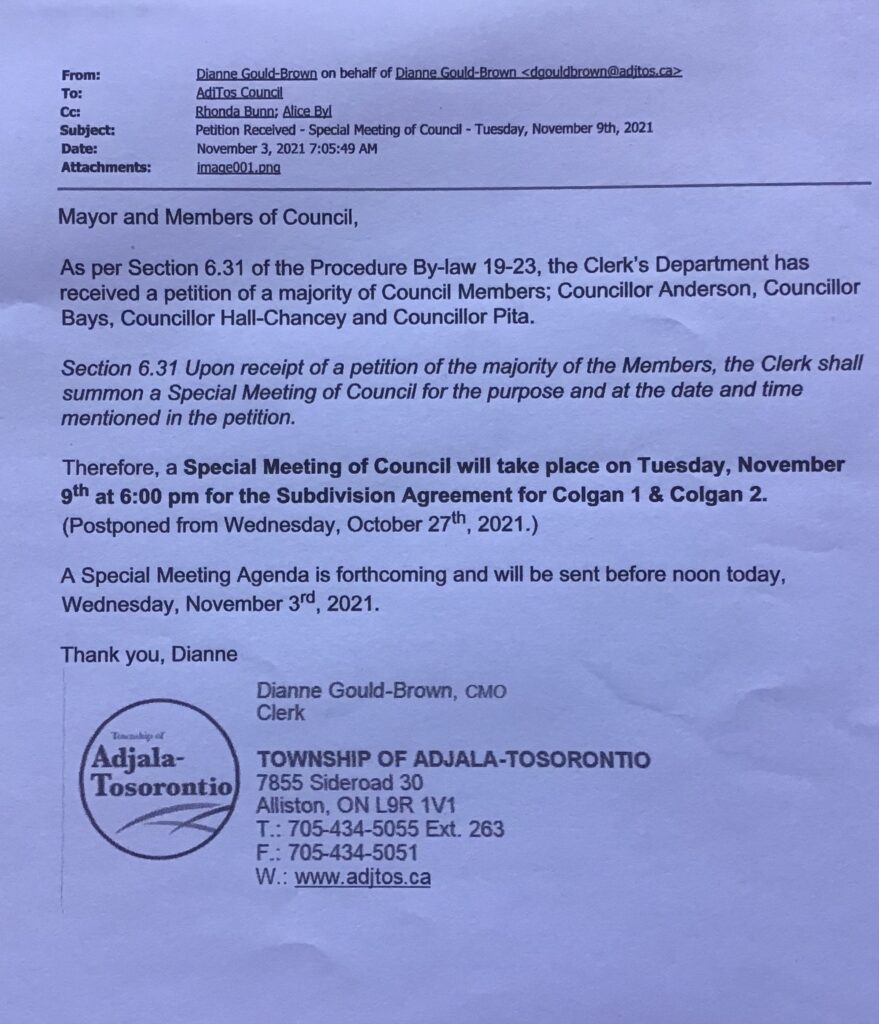 The June 29, 2021 meeting was found to be in violation of the Municipal Act as past councillors Annette Bays, Jonathan Pita, Deborah Hall Chancey aka Deborah Hall and Ronald O’Leary were discussing Annette Bays personal flyer (correspondence). I found this out when staff informed me that Annette Bays was asking staff to print over 1000 copies of her personal flyer at the Municipal office at the tax payers expense.